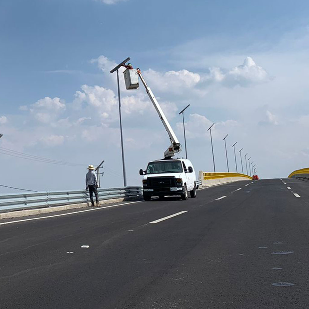 Suministro e instalación de luminarias all-in-one. Diseño, fabricación e instalación de postes y bases de concreto a la medida de tu proyecto.